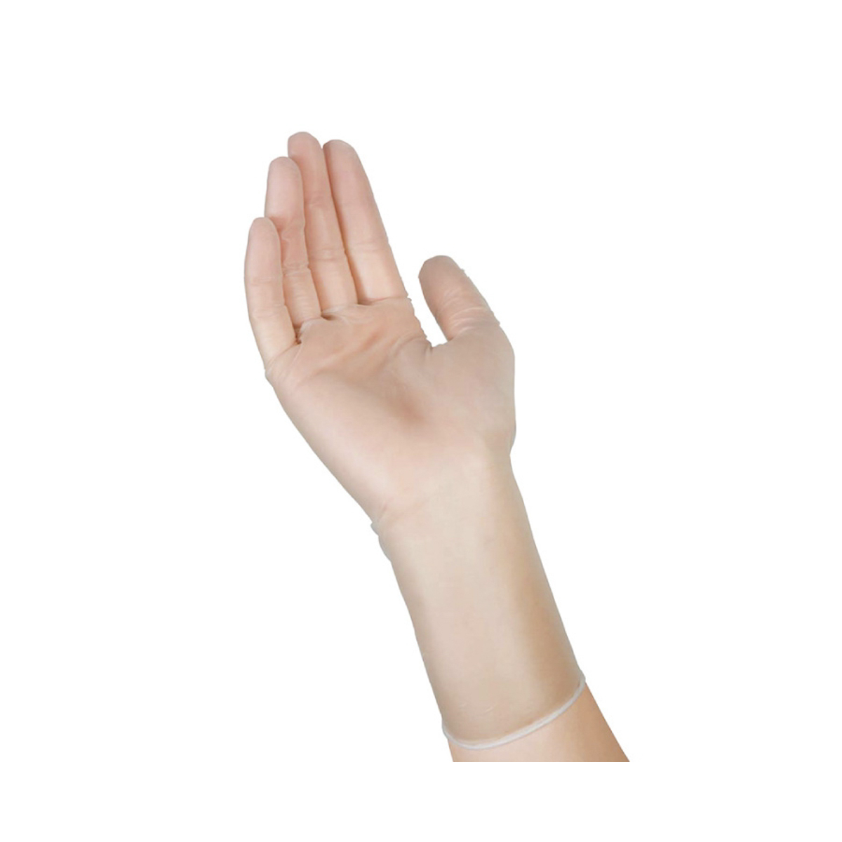 使い捨てタイプのプラスチック手袋。アレルギーに配慮した粉無タイプです。