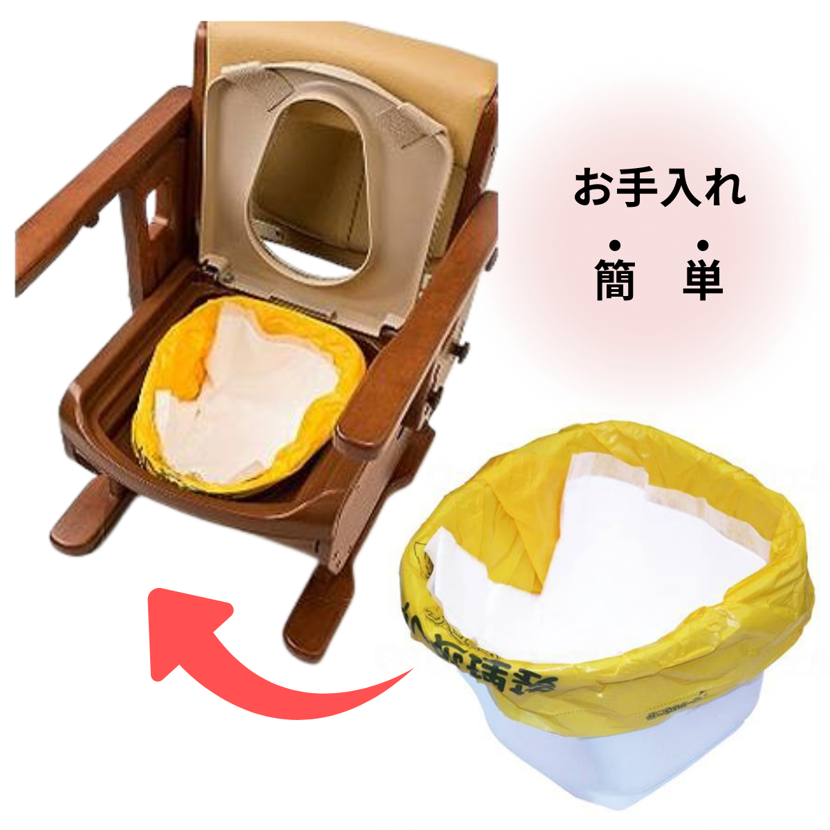 ポータブルトイレのバケツにワンタッチで被せられ、中身が見えにくいオレンジ色の袋です。
